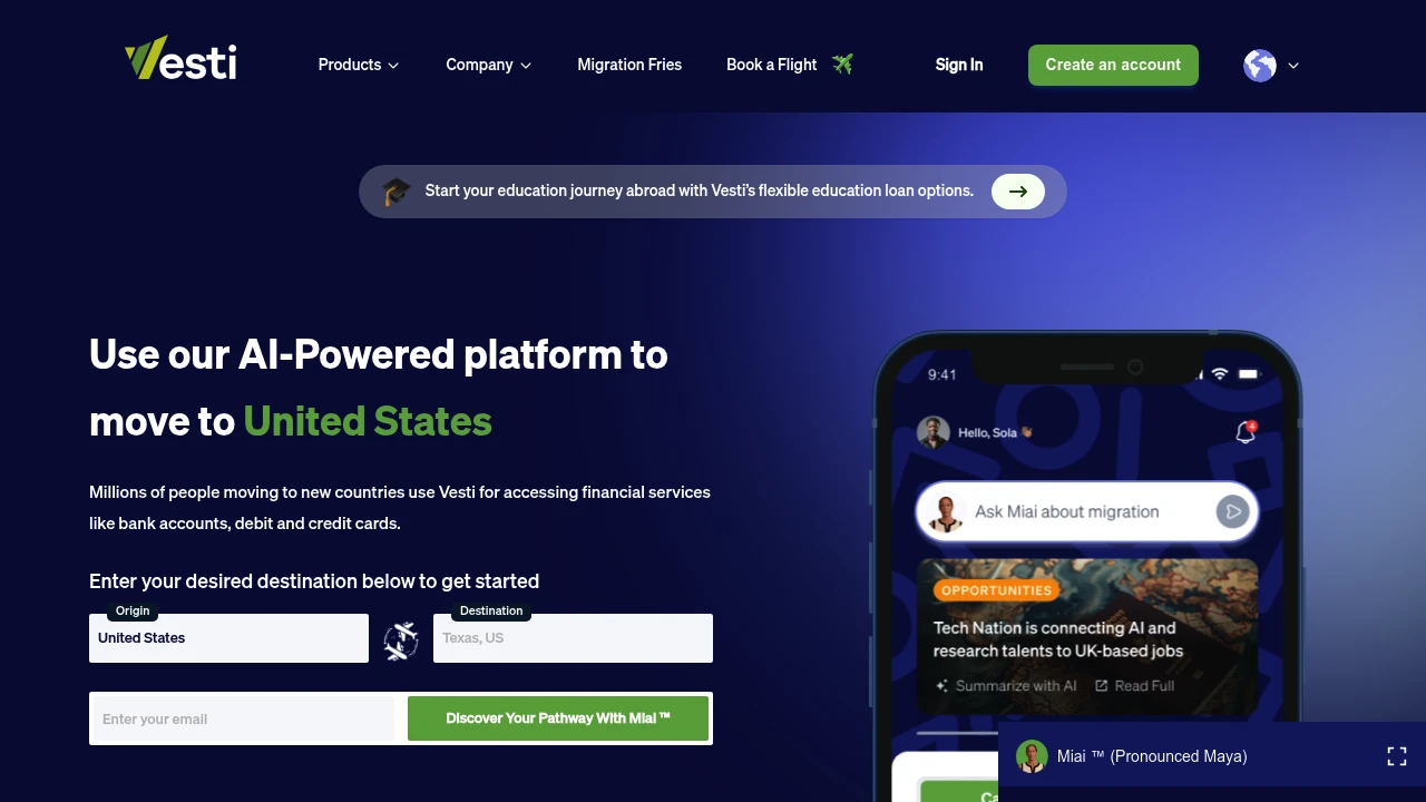 Vesti provides financial and migration support for immigrants and aspiring migrants—especially those relocating from Africa to destinations like the US, UK, and Europe. The platform combines practical money tools with guided migration assistance, helping users plan, pay, and settle more easily.